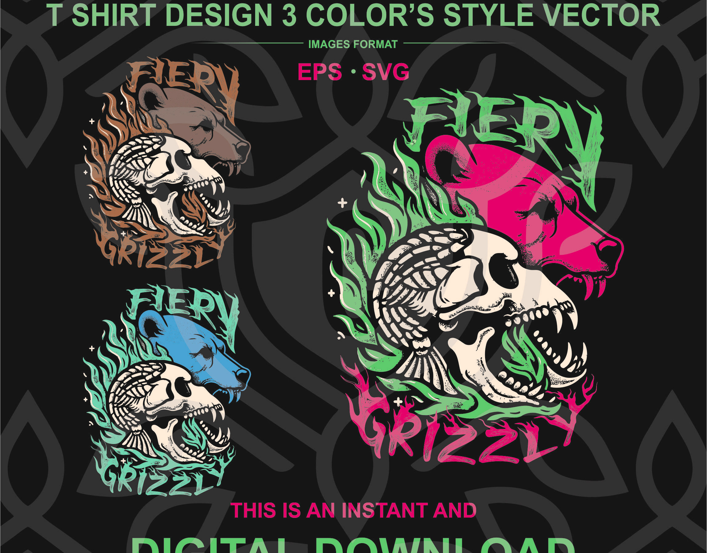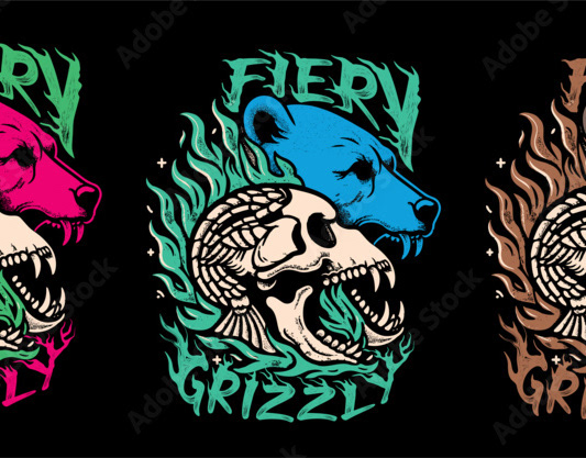 Fiery Grizzly and skull T Shirt Design